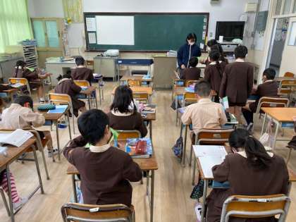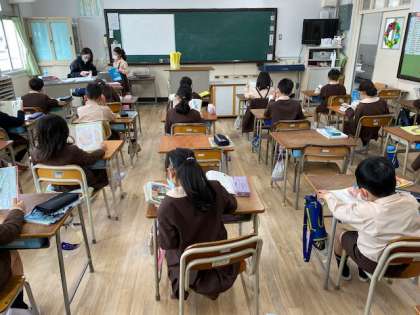 本日2時間目、2年生1・2組の授業のようすです。どちらも国語で、1組は読書を、2組は心に残った本の紹介を書いています。