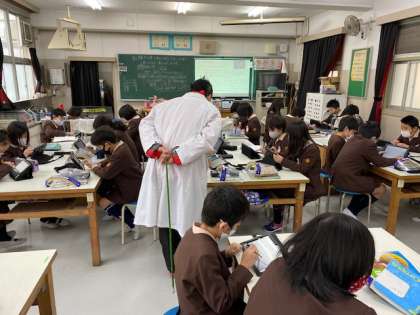 本日2時間目、4年生1・2組の授業のようすです。1組は社会で、「天神まつり」等についてのプリントに取り組んでいます。2組は理科で、星座についてタブレットを使って調べています。