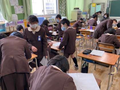 本日2時間目、6年生1・2組の授業のようすです。どちらも算数で、2学期の既習事項のプリントに取り組んでいます。できた人が分からない人に教えてあげたりしています。