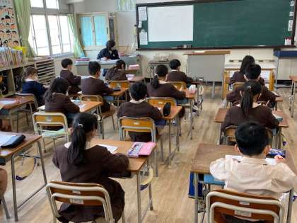 本日2時間目、2年生1・2組の授業のようすです。1組はプリント配付やプリントの答え合わせ等をしています。2組は道徳で、これまで学習してきた「どうとくノート」の内容に抜けがないかを確認しています。