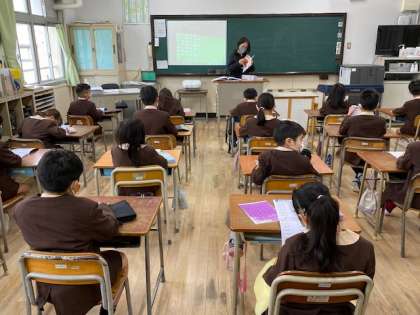 本日2時間目、2年生1・2組の授業のようすです。1組は算数で、ドリルに取り組んでいます。2組は学活で、一人ずつ「冬休みに楽しかったこと」と「今年の目標」をみんなの前で話しています。