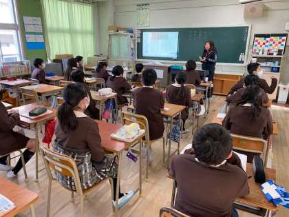 本日3時間目、5年生1・2組の授業のようすです。どちらも学活で、1組は冬休みにあったことの報告を一人ずつ考えて発表を、2組はプリント配付を行っています。