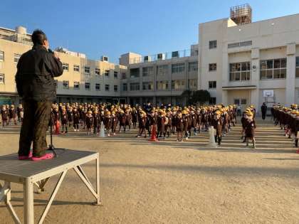 校長先生より新型コロナウイルスへの注意や成人の日、阪神淡路大震災、「大阪市学力経年調査」についてのお話がありました。