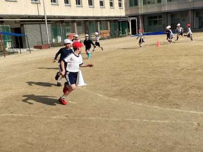 本日3時間目、2年生1・2組の授業のようすです。1組は国語で、「かさこじぞう」の学習をしています。2組は体育で、運動場で耐寒のかけ足をしています。