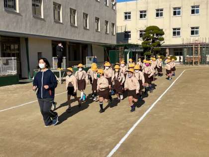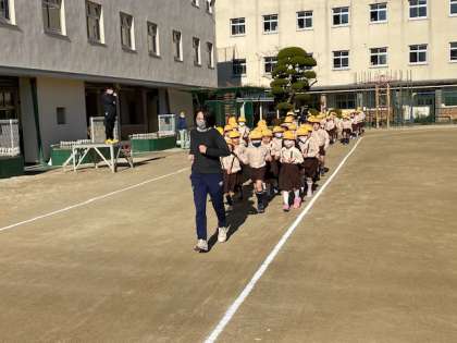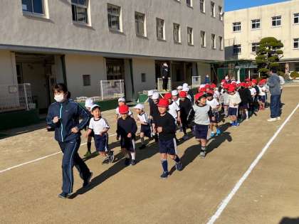 今年度は密を避けるために全学年一斉に走るのはやめました。まず1時間目終了後の休み時間に低学年のみで走りました。