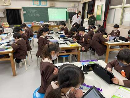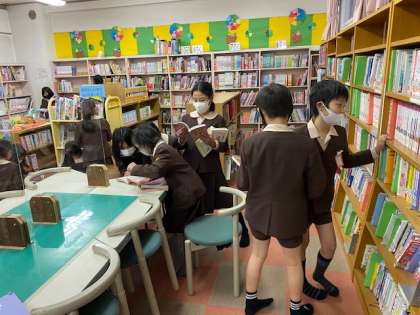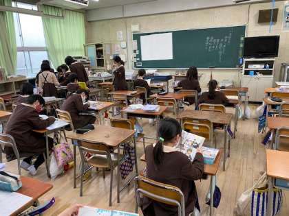 本日5時間目、4年生1・2組の授業のようすです。1組は理科で、タブレットを使って自習をしています。2組は図書の時間で、図書館で本を借りてきて、教室で読んでいます。