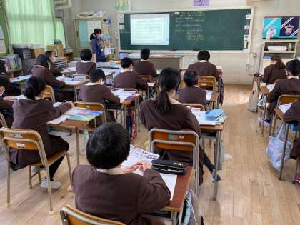本日2時間目、5年生1・2組の授業のようすです。どちらも社会で、「コンビニでの商品の情報の活用」等について学習をしています。