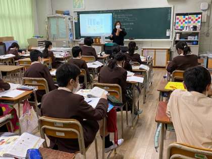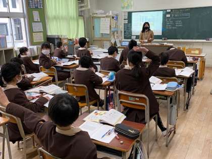本日3時間目、5年生1・2組の授業のようすです。どちらも算数で、「立体の形の特ちょう」について学習しています。