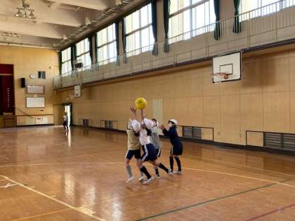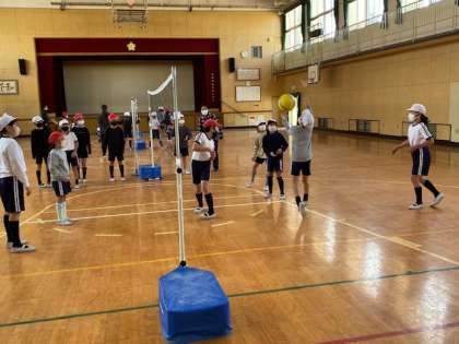 本日2時間目、4年生1・2組の授業のようすです。1組は社会で、「包丁づくりのさかんな堺市」の単元テストをしています。2組は体育で、ソフトバレーボールの練習をしています。