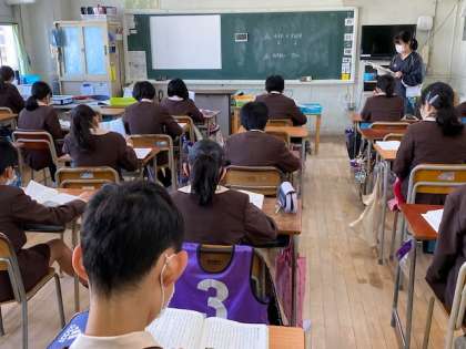 本日2時間目、6年生1・2組の授業のようすです。どちらも国語で、「プロフェッショナルたち」の単元をみんなで順番に音読していっています。