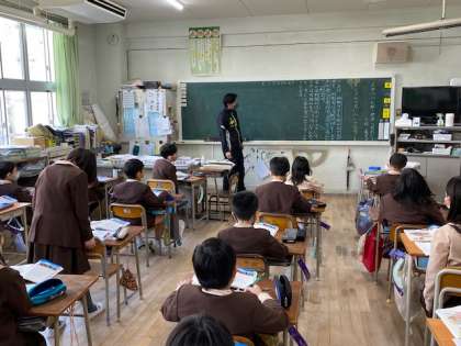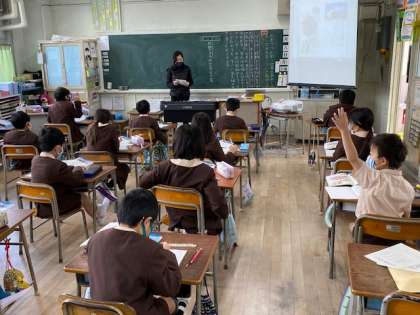 本日2時間目、3年生1・2組の授業のようすです。どちらも国語で、「人をつつむ形−世界の家めぐり」の単元の「モンゴルの家について説明しよう」に取り組んでいます。