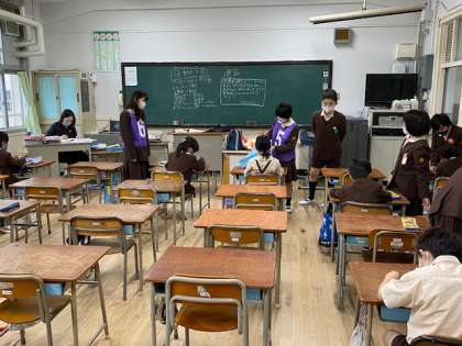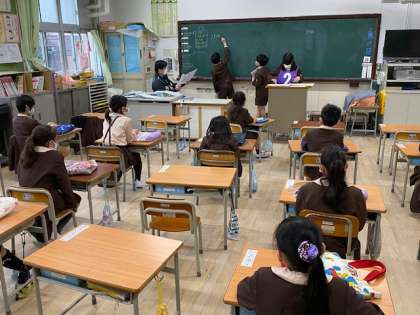 各教室に兄弟班で2班ずつ入り、5年生の新しいリーダーの紹介や「卒業を祝う会」に向けての準備を行いました。