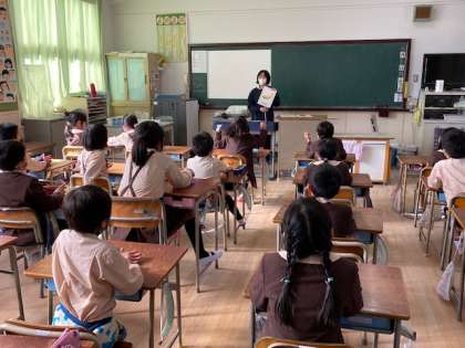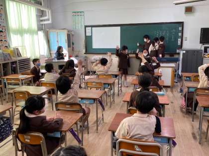 本日5時間目、2年生1・2組の授業のようすです。1組は学活で、みんな遊びについて決めています。2組は英語活動で、「バナナ」「レモン」等を英語で発音したりしています。