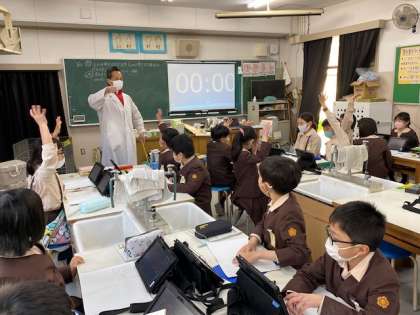 本日5時間目、3年生1・2組の授業のようすです。1組は理科で、「ものの形をかえたとき ものの重さはかわるのだろうか」について考えています。2組は社会で、「うつりかわる大阪市とくらし」について学習しています。