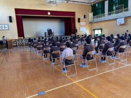 本日5時間目、6年生1・2組の授業のようすです。本日より講堂で、卒業式の練習が始まりました。卒業証書の受け取り方等の練習をしています。