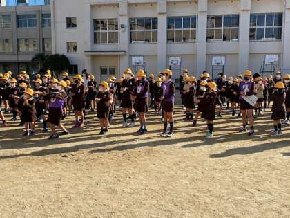 今日は集会委員会の人たちが「落ちた落ちた」ゲームをしてくれました。集会委員が「落〜ちた 落ちた」と言い、みんなが「な〜にが落ちた」と返して、集会委員が言ったものを手で受ける形を作ります。危険なものや大きすぎるものは避ける格好をします。