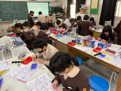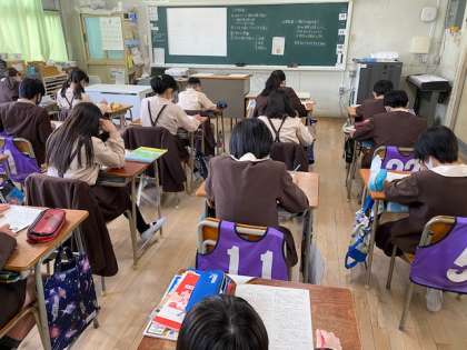 本日5時間目、5年生1・2組の授業のようすです。1組は理科で、教材キットを使ってコイルを制作しています。2組は社会で、プリント学習をしています。