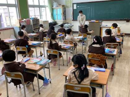 本日3時間目、1年生1・2組の授業のようすです。どちらも算数で、「100までのかずのけいさん」の学習をしています。
