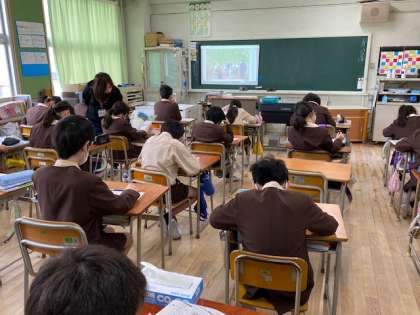 本日2時間目、5年生1・2組の授業のようすです。どちらも社会で、「わたしたちの生活と環境」についてプリント学習をしています。