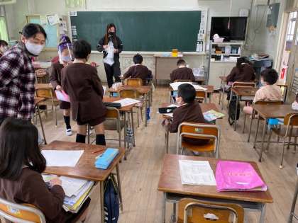 本日2時間目、3年生1・2組の授業のようすです。どちらも国語で、プリント学習をしたり意見交流をしたりしています。