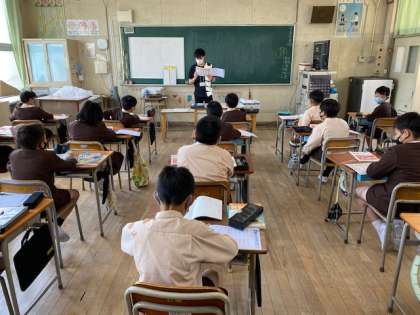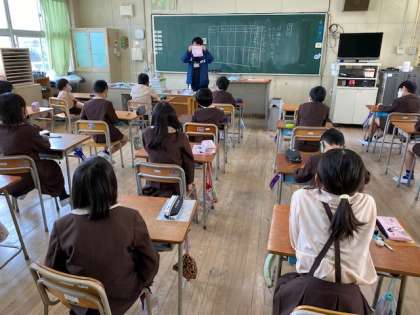 本日2時間目、4年生1・2組の授業のようすです。どちらも学活で、係決めをしたり、配付物を配ったりしています。