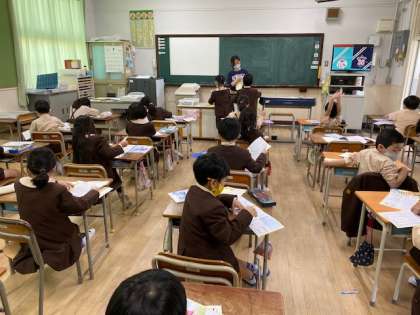 本日2時間目、2年生1・2組の授業のようすです。どちらも算数で、算数ドリルに取り組んでいます。