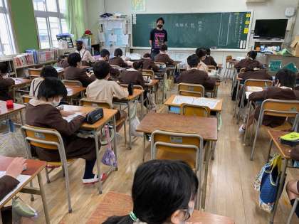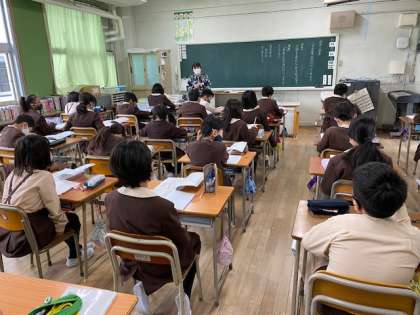 本日2時間目、5年生1・2組の授業のようすです。どちらも国語で、「この言葉 あなたならどう考える」について学習しています。