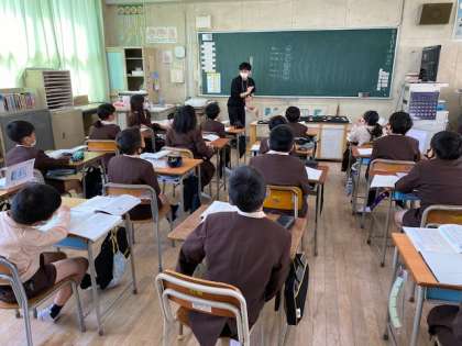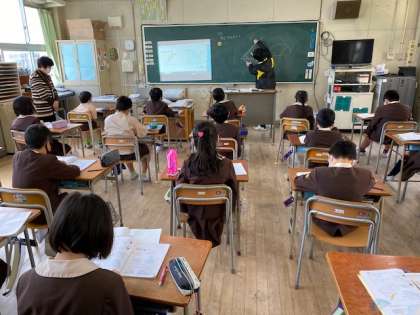 本日2時間目、4年生1・2組の授業のようすです。1組は算数で、「角とその大きさ」の単元で分度器を使った学習をしています。2組は国語で、「もしも、どうしたい」の学習をしています。