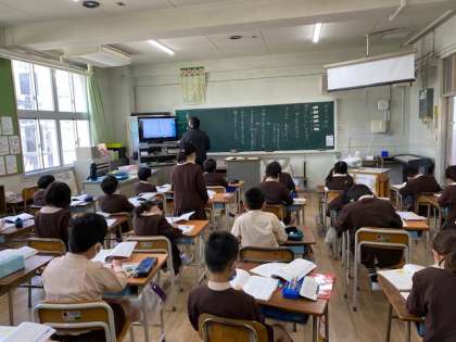 本日2時間目、3年生1・2組の授業のようすです。どちらも国語で、「すいせんのラッパ」の学習に取り組んでいます。