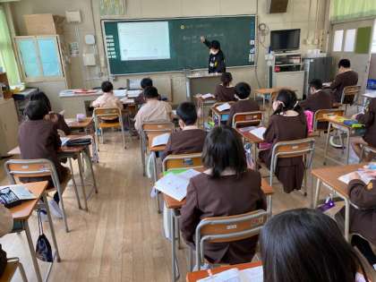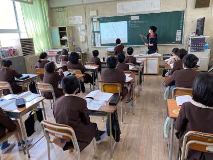 本日2時間目、4年生1・2組の授業のようすです。どちらも算数で、「角とその大きさ」の単元で「180°をこえる角の大きさ」のはかり方を学習をしています。