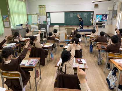 本日2時間目、2年生1・2組の授業のようすです。どちらも国語で、1組は「風の ゆうびんやさん」の学習を、2組は漢字の学習をしています。