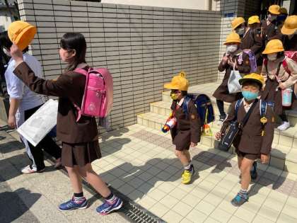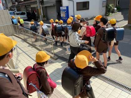 各教室での話し合いが終わってから、地域でかたまって集団下校をしました。