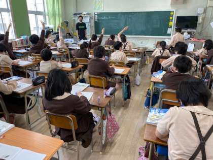 本日3時間目、5年生1・2組の授業のようすです。どちらも算数で、「直方体の体積」の学習をしています。