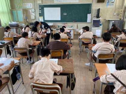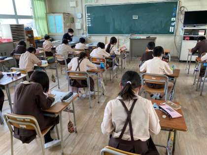 本日3時間目、4年生1・2組の授業のようすです。どちらも算数で、「角とその大きさ」の単元テストをしています。