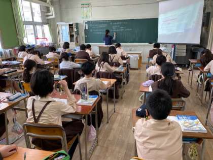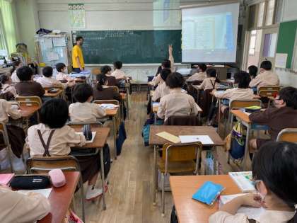 本日3時間目、5年生1・2組の授業のようすです。どちらも算数で、「ガラスの水槽の容積」を計算する学習をしています。