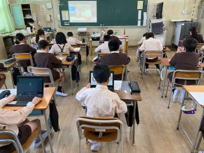 本日3時間目、4年生1・2組の授業のようすです。どちらもドリルやプリント・タブレットパソコンを使って自習をしています。