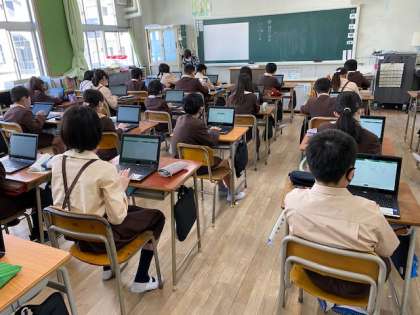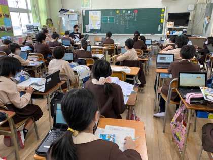 本日3時間目、5年生1・2組の授業のようすです。どちらもタブレットパソコンを使ってジャストスマイルドリルの理科学習をしています。