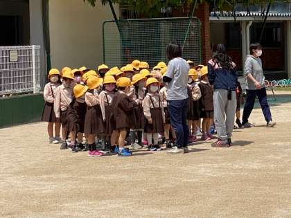 本日は、1年生の運動場遊びデビューでした。3・4時間目の間の休み時間に、入学して初めて運動場で遊びました。