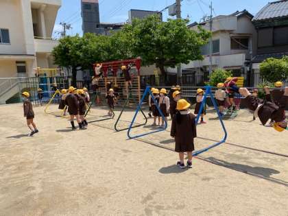 みんな思い思いに鉄棒やジャングルジム・ろくぼく等で遊びました。