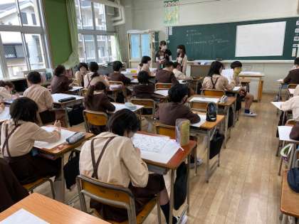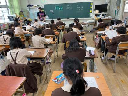 本日3時間目、5年生1・2組の授業のようすです1組は社会のプリント学習をしています。2組は、図工の作品を作っています。