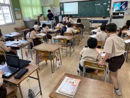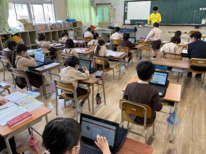 本日3時間目、2年生1・2組の授業のようすです。どちらも国語で、タブレットを使ったり、漢字ドリル、プリント等をしています。