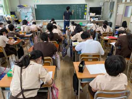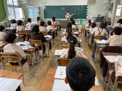 5年生1・2組の授業のようすです。どちらも国語で、「漢字の成り立ち」について学習しています。