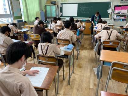 6年生1・2組の授業のようすです。どちらも算数で、「分数の計算」について学習しています。