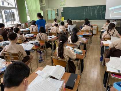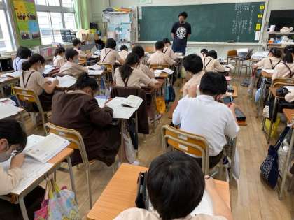 5年生1・2組の授業のようすです。どちらも国語で、「「知りたいことを聞き出そう」ということで、先日行われた「非行防止教室」についてプリントにまとめて作文しています。