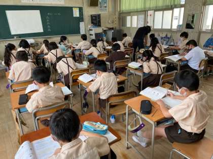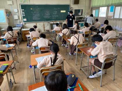 4年生1・2組の授業のようすです。どちらも算数で、「大きな数の計算」に取り組んでいます。