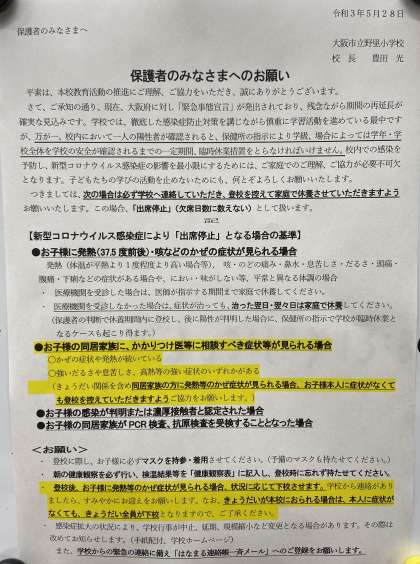 ご家庭でのご理解、ご協力を何とぞよろしくお願いします。