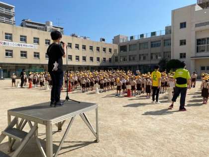 看護当番の先生からは、6月の生活目標「健康に気をつけて生活しよう!」についてと「水分補給の仕方」、「信号を守ろう」等のお話がありました。