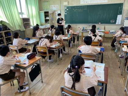 4年生1・2組の授業のようすです。どちらも社会で、1組は「大阪府のようす」のテストを、2組は「健康な暮らしをささえる」として、「ゴミ調べをもとに気づいたことを交流」しています。