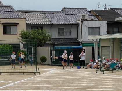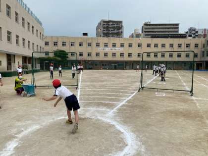 6時間目、6年生2組の「ソフトボール投げ」のようすです。