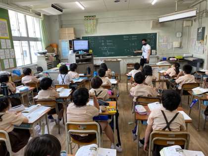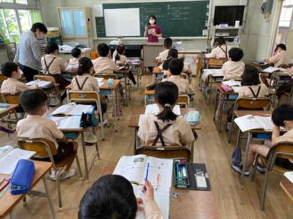 3年生1・2組の授業のようすです。どちらも算数で、「大きな数の大小」で、「不等号」や「数直線」の学習に取り組んでいます。